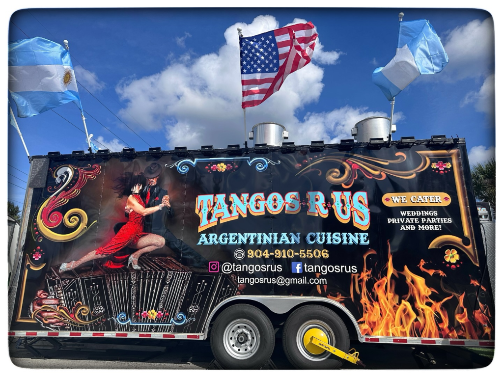 Today, Fabiana proudly revives this legacy in Jacksonville serving these same empanadas through Tangos R Us Food Truck, alongside other authentic dishes such as Tangos Bowl, Choripan Sandwiches, Milanesa Napolitana Sandwich or on a plate, Ribeye(churrasco) our specialty Messi Burgers and much more “grandma-style” Argentine recipes.